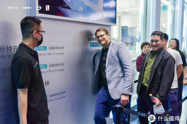 到底什么才叫“油电同速”?来到现场闪充实测区,你就能找到答案。比亚迪的兆瓦闪充技术,直接打破了我们对充电速度的固有认知——充电5分钟,续航400公里!这是什么概念?相当于你坐进车里,刷几条短视频、或者点杯奶茶顺便回两条工作微信的功夫,电量就能从10%狂飙到70%。这种“1秒2公里”的极致推背感,不仅能让你彻底告别深夜排队等充电桩的焦躁,更让“随用随充”成为了日常。只有亲手体验过这种“喝杯咖啡就满电出发”的爽感,你才能真正理解什么叫科技改变生活。